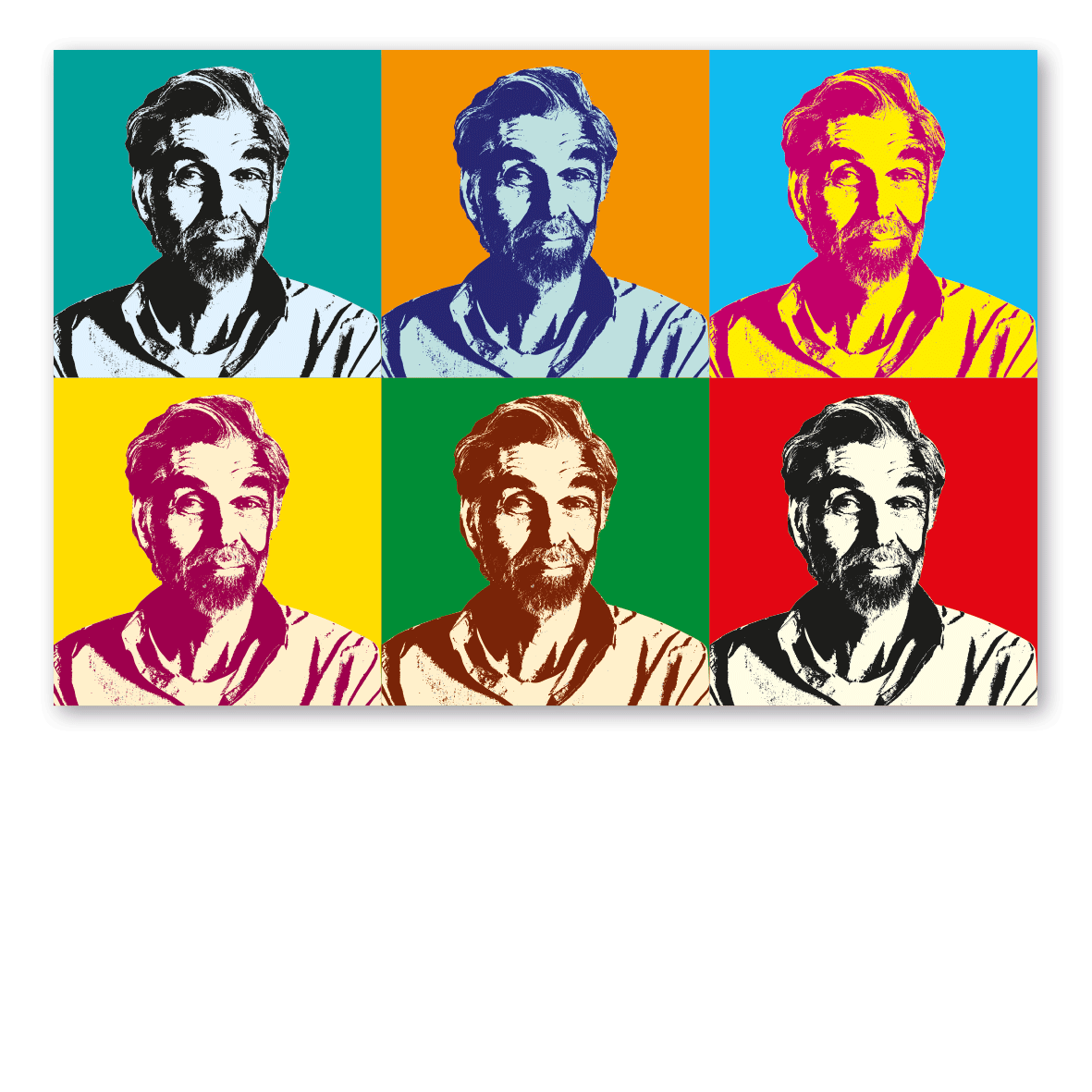 Präsentieren Sie Ihr lustiges oder dynamisches Portrait im angesagten Pop Art-Stil mit 6 Farbvarianten auf einem Schild. Dieses hochwertige Pop Art-Schild, inspiriert von Andy Warhol, ist ein wahrer Hingucker an jeder Wand und begeistert Ihre Besucher. Sie suchen ein individuelles Geschenk? Mit einem Pop Art-Schild erwerben Sie ein unverwechselbares und bleibendes Geschenk, das an Individualität kaum zu übertreffen ist. Unsere Pop Art-Kunstschilder bestechen durch einen brillanten Druck und Langlebigkeit, sie sind massiv und formstabil, da aus 3 mm Aluminium-Verbundmaterial gefertigt. Ihr Bild können Sie uns ganz bequem im Rahmen der Bestellung über die Upload-Funktion auf dieser Seite zukommen lassen.