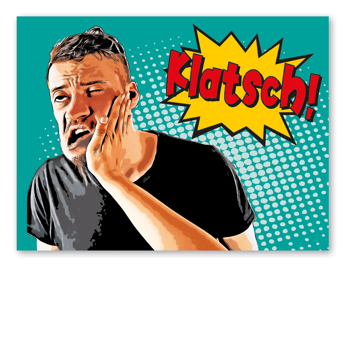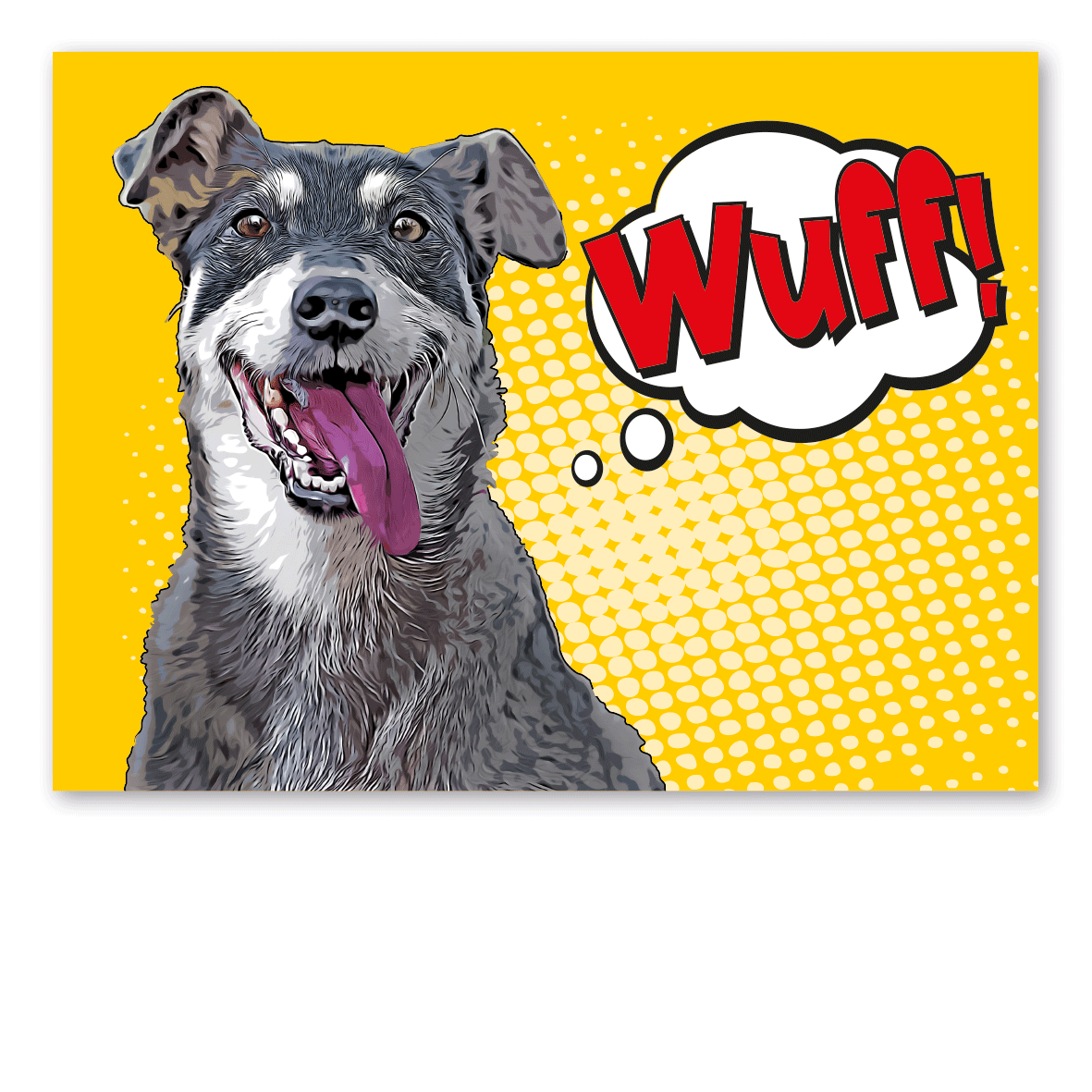 Präsentieren Sie Ihr lustiges oder dynamisches Portrait im angesagten Comic-Pop Art-Stil mit einer Textblase bzw. Aktionsgrafik mit Ihrem Schlagwort in 6 Varianten. Sie können bei der Aktionsgrafik zudem wählen, ob diese eine Sprech- oder Gedankenblase darstellen soll oder ein dynamisches Symbol für Geräusche, z.B. "Boom!" Dieses hochwertige Comic-Schild in Pop Art-Ausführung ist ein wahrer Hingucker an jeder Wand und begeistert Ihre Besucher. Sie suchen ein individuelles Geschenk? Mit einem Pop Art-Schild im Comic Stil erwerben Sie ein unverwechselbares und bleibendes Geschenk, das an Individualität kaum zu übertreffen ist. Unsere Comic-Kunstschilder bestechen durch einen brillanten Druck und Langlebigkeit, sie sind massiv und formstabil, da aus 3 mm Aluminium-Verbundmaterial gefertigt. Ihr Bild können Sie uns ganz bequem im Rahmen der Bestellung über die Upload-Funktion auf dieser Seite zukommen lassen. Bitte beachten Sie unbedingt weiter unten unsere Informationen zur Qualität Ihres Bildmaterials.