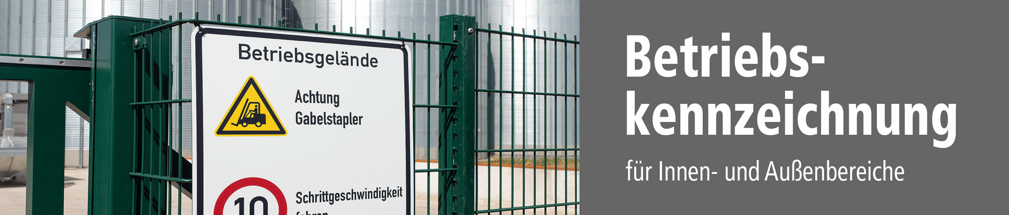 Die meisten Schilder zur Betriebskennzeichnung bieten wir als Kombinationsschilder in zahlreichen Varianten an, die sich in der Kombination aus genormten Sicherheitszeichen und Verkehrszeichen nach StVO sowie standardisierten oder nach Ihren Vorgaben platzierten Textinhalten bewährt haben.
