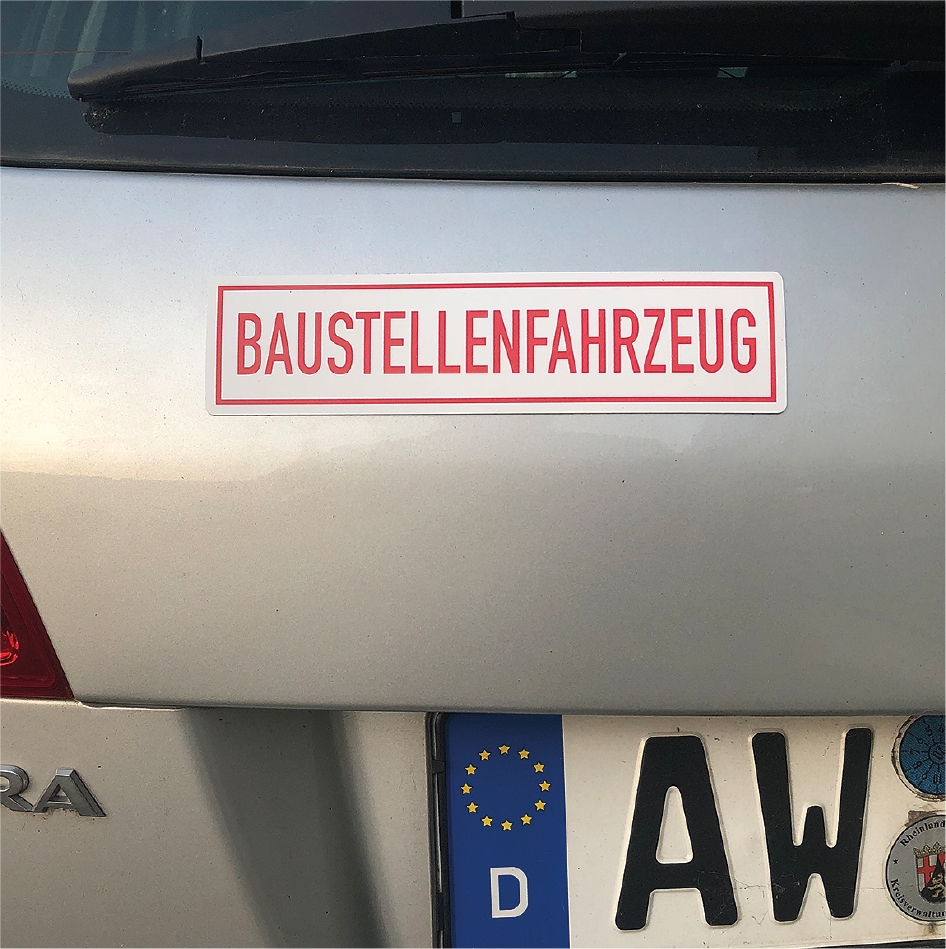 KFZ - Magnetschild Baustellenfahrzeug – die flexible Beschilderung von Kraftfahrzeugen. Magnetschilder haften auf allen ferromagnetischen (eisenhaltigen) Oberflächen, sie lassen sich jederzeit anbringen und wieder rückstandslos entfernen, was eine flexible Nutzung der Fahrzeuge ermöglicht, die sowohl beruflich als auch privat genutzt werden. Unsere hochwertigen, in Deutschland gefertigten Magnetschilder sind dank ihrer schutzlaminierten Oberfläche langlebig und leicht zu reinigen.