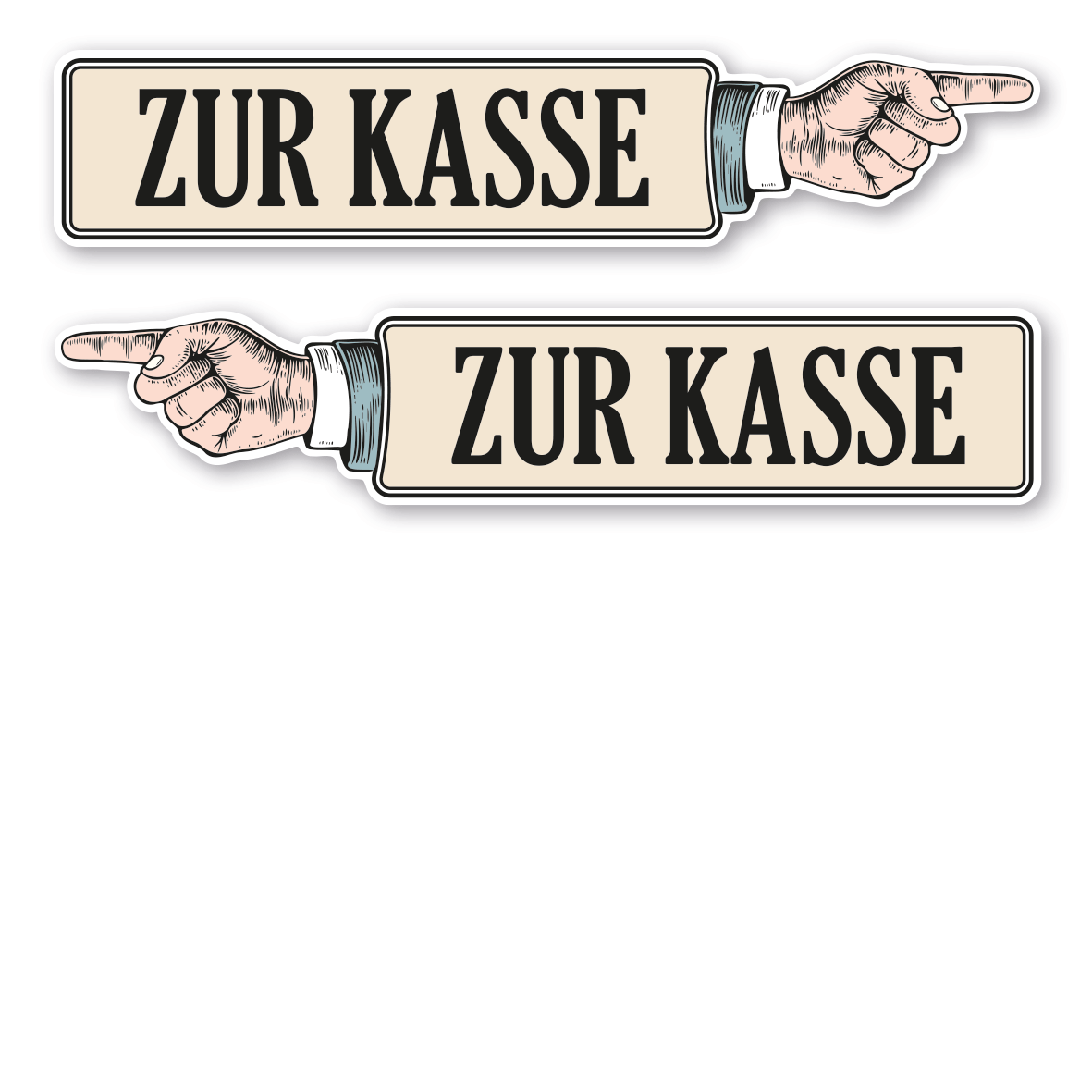 Produktinformationen "Wegweiser Zur Kasse - Mit Fingerzeig (Hand) zur Richtungsangabe – Retroausführung"