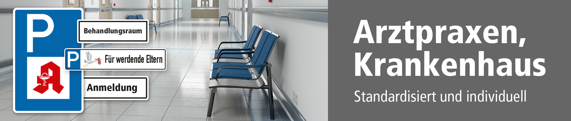 In dieser Kategorie finden Sie Schilder rund um das Gesundheitswesen in vielfältiger Form: für Ärzte, Krankenhäuser, Apotheken und Arztpraxen. Wir führen diverse Schilder in verschiedenen Ausführungen zur Kennzeichnung von Parkplätzen vor Praxen und Krankenhäusern wie auch Kennzeichnungen für andere Bereiche. Die meisten Schilder und Hinweise können auch in einer reflektierenden Ausführung bezogen werden, um in der Dämmerung oder Dunkelheit von Verkehrsteilnehmern besser wahrgenommen zu werden. Sie wünschen ein Schild, das wir nicht führen oder in einer anderen Größe oder Farbvariante? Fragen Sie uns. Wir fertigen diese Schilder nach Ihren Vorgaben. Gerne unterbreiten wir Ihnen unser Angebot.