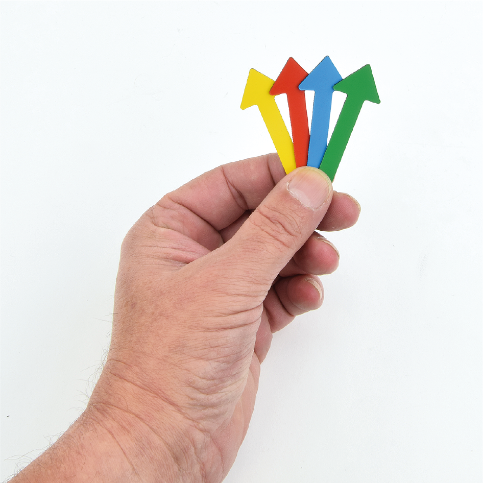 • farbig bedruckte Magnetfolie in Pfeilform gestanzt  (Sonderformate sind auf Anfrage möglich)