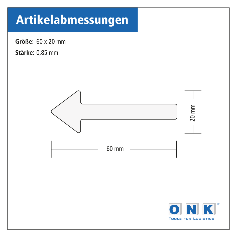 • 60 x 20 mm, Stärke: 0,85 mm (Sondergrößen sind auf Anfrage möglich)