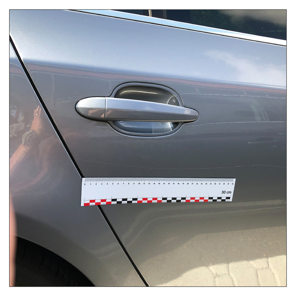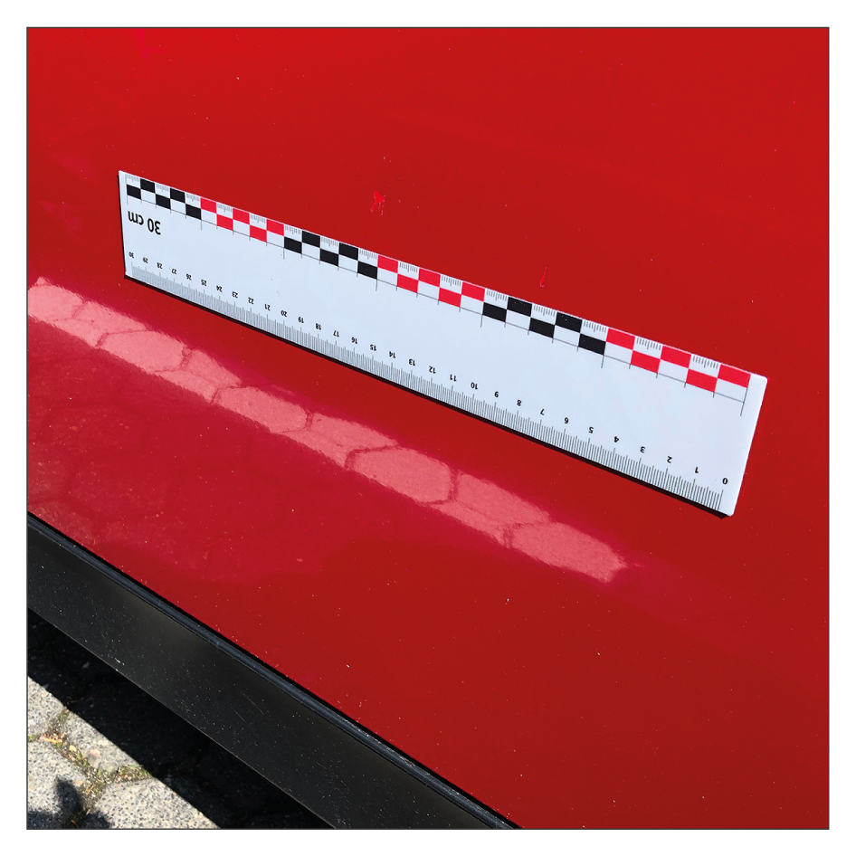 Messlineale für Sachverständige, KFZ-Gutachter und Präsentationen. Magnetische Messlineale mit Millimetereinteilung und praxisbezogener Zentimeterdarstellung sind unverzichtbar für die fotografische Darstellung von Kleinschäden (Vorschäden oder bei Rücknahmegutachten). Durch die Nutzung des Lineals entfällt eine nachträgliche, aufwändige Bildbearbeitung, die Authentizität der Fotos bleibt im vollen Umfang erhalten, eine Dokumentation von Beschädigungen ist jederzeit nachvollziehbar. Unsere hochwertigen, in Deutschland gefertigten Messlineale haften auf allen ferromagnetischen (eisenhaltigen) Oberflächen, sie sind biegsam und lassen sich leicht reinigen.