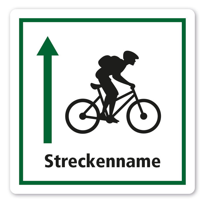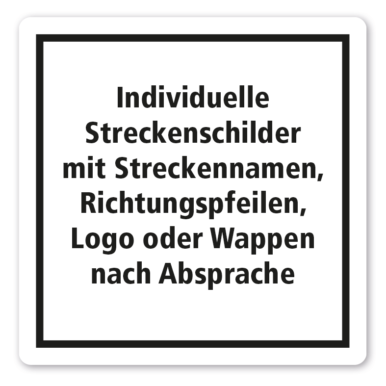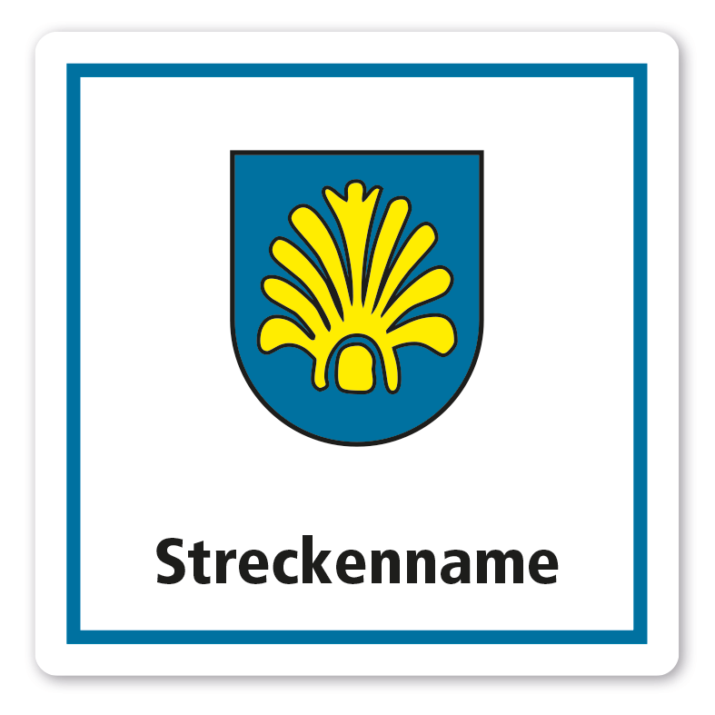 Individuelle Streckenschilder - Rad- und Wanderwege - mit Streckennamen, Richtungspfeilen, Logo oder Wappen nach Absprache – quadratisch