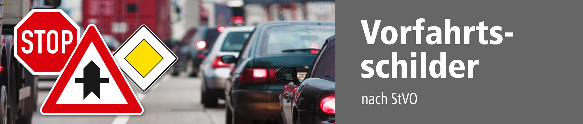 Vorfahrtsschilder gehören zu den wichtigsten Schildern unter den Verkehrsschildern, um Unfälle zu vermeiden. Sie zeigen Verkehrsteilnehmern auf öffentlichen Straßen, aber auch auf Betriebsgeländen, großen Parkzonen sowie Privatgeländen an, welches Fahrzeug das Vorrecht zur Weiterfahrt hat bzw. Vorfahrt gewähren muß. Wir führen die gängigsten Vorfahrtsschilder als einzelne Verkehrszeichen – u.a. die Schilder Achtung, Kreuzung oder Einmündung mit Vorfahrt von rechts – VZ 102, Vorfahrt gewähren – VZ 205 sowie Vorfahrtstraße – VZ 306.