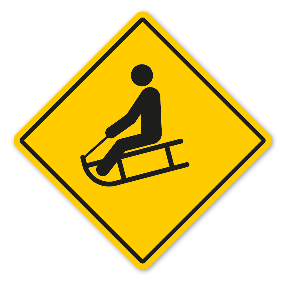 Warnschild Achtung Sleds (Schlitten - Rodler) crossing - mit und ohne Text. Unsere internationalen Schilder sind in diversen Ausführungen und Größen erhältlich – auf Wunsch, auch mit Ihrem Wunschtext.