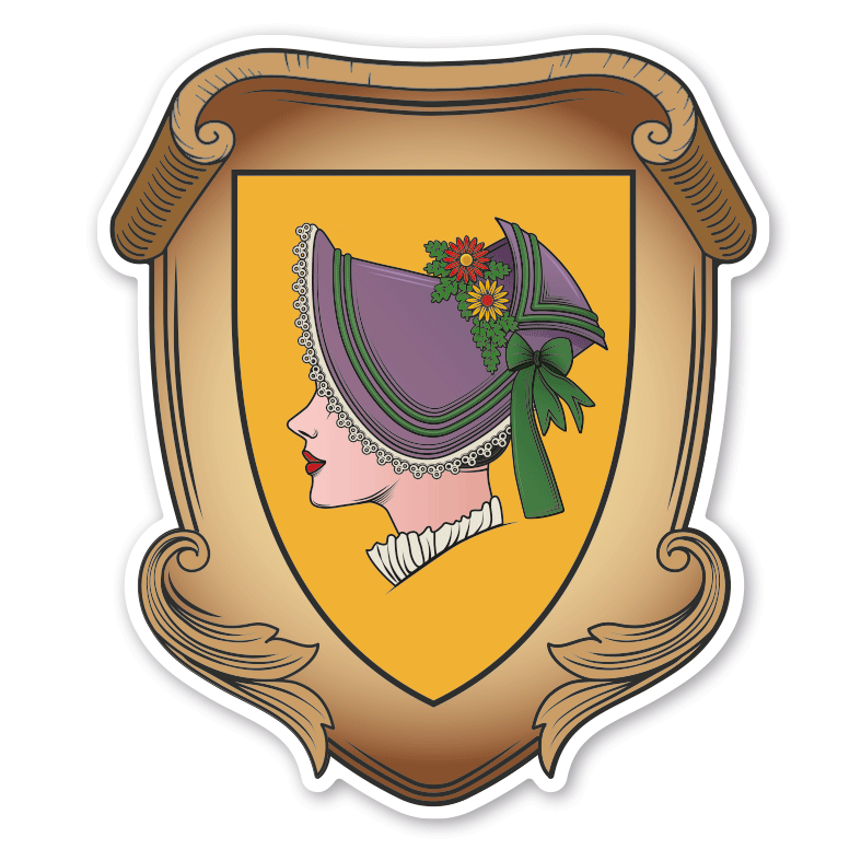 Maibaumschild / Zunftschild Modistin - Putzmacher - Hutmacher. Unsere Maibaumschilder und Zunftwappen sind in Ihrer Symbolik mittelalterlichen oder neueren Ausführungen der Zunftzeichen einzelner Handwerksgilden nachempfunden. Da die Handwerkswappen der einzelnen Berufsstände je nach Stadt, Land oder Zeitepoche stark variieren können, haben wir uns bei der grafischen Umsetzung auf allgemein gebräuchliche Abbildungen der Werkzeuge und Werkzeugzusammenstellungen konzentriert. Weiterhin wurden einzelne Zunftzeichen um neuere Symbole oder Werkzeuge ergänzt, um auch neuzeitlichen Berufen gerecht zu werden. Unsere Maibaumschilder zur Brauchtumspflege aus deutscher Fertigung sind langlebig, außerordentlich stabil und somit wahre Schmückstücke für jeden Maibaum.