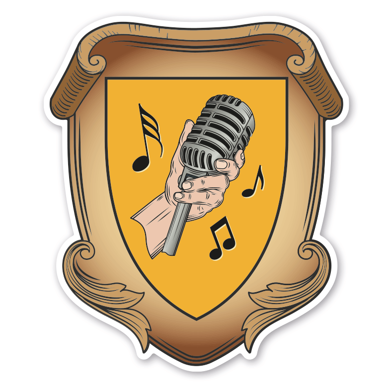 Maibaumschild / Zunftschild Gesang - Sänger - Sängerin. Unsere Maibaumschilder und Zunftwappen sind in Ihrer Symbolik mittelalterlichen oder neueren Ausführungen der Zunftzeichen einzelner Handwerksgilden nachempfunden. Da die Handwerkswappen der einzelnen Berufsstände je nach Stadt, Land oder Zeitepoche stark variieren können, haben wir uns bei der grafischen Umsetzung auf allgemein gebräuchliche Abbildungen der Werkzeuge und Werkzeugzusammenstellungen konzentriert. Weiterhin wurden einzelne Zunftzeichen um neuere Symbole oder Werkzeuge ergänzt, um auch neuzeitlichen Berufen gerecht zu werden.  Unsere Maibaumschilder zur Brauchtumspflege aus deutscher Fertigung sind langlebig, außerordentlich stabil und somit wahre Schmückstücke für jeden Maibaum.