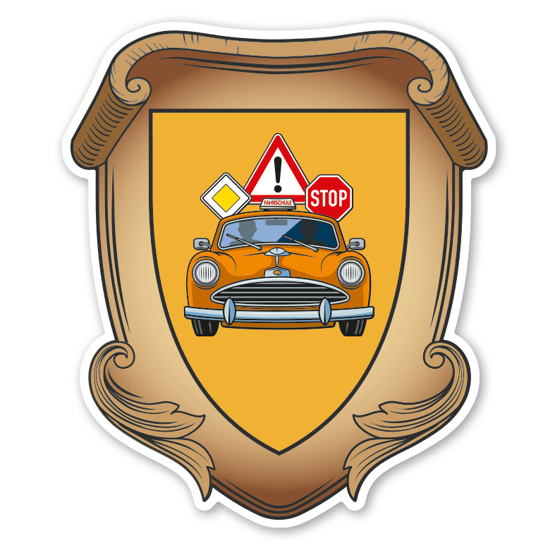 Merkmale des Maibaumschildes / Zunftwappens mit dem Zunftzeichen Fahrschule - Wappen A - MAI-A-196: