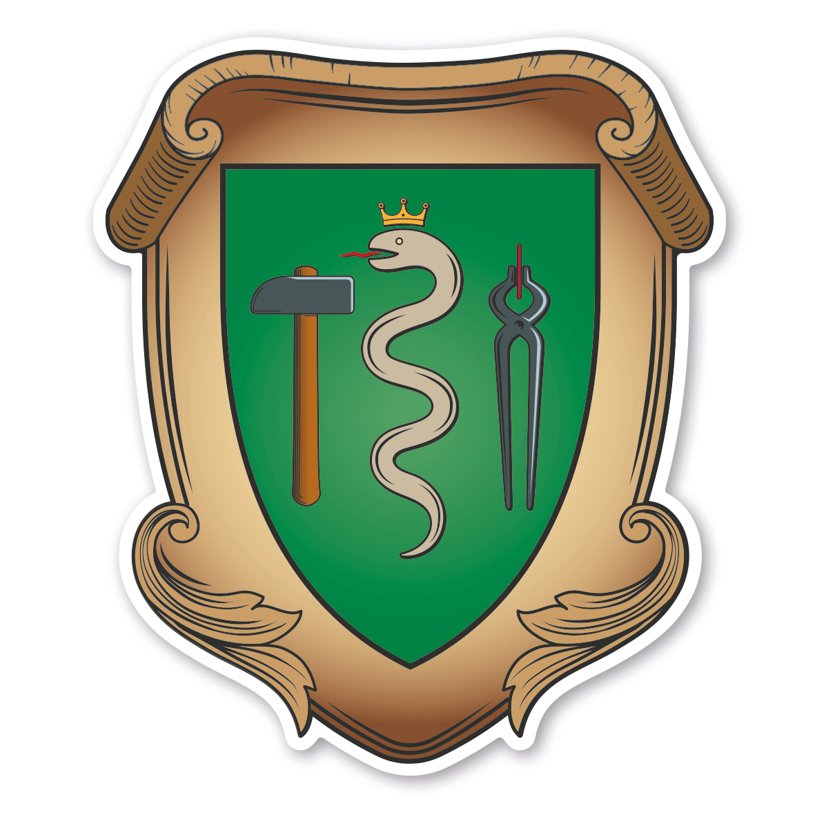 Maibaumschild / Zunftschild Schmied. Unsere Maibaumschilder und Zunftwappen sind in Ihrer Symbolik mittelalterlichen oder neueren Ausführungen der Zunftzeichen einzelner Handwerksgilden nachempfunden. Da die Handwerkswappen der einzelnen Berufsstände je nach Stadt, Land oder Zeitepoche stark variieren können, haben wir uns bei der grafischen Umsetzung auf allgemein gebräuchliche Abbildungen der Werkzeuge und Werkzeugzusammenstellungen konzentriert. Weiterhin wurden einzelne Zunftzeichen um neuere Symbole oder Werkzeuge ergänzt, um auch neuzeitlichen Berufen gerecht zu werden. Unsere Maibaumschilder zur Brauchtumspflege aus deutscher Fertigung sind langlebig, außerordentlich stabil und somit wahre Schmückstücke für jeden Maibaum.