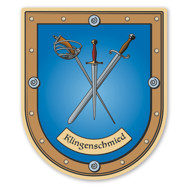 Merkmale des Maibaumschildes / Zunftwappens / Wappenschildes Klingenschmied - Waffenschmied - Schmied - mit Zunftnamen oder Ihrem Wunschtext - Wappen B - MAI-B-172: