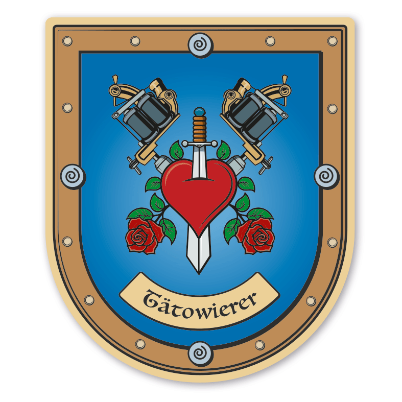 Merkmale des Maibaumschildes / Zunftwappens / Wappenschildes Tätowierer - mit Zunftnamen oder Ihrem Wunschtext - Wappen B - MAI-B-116: