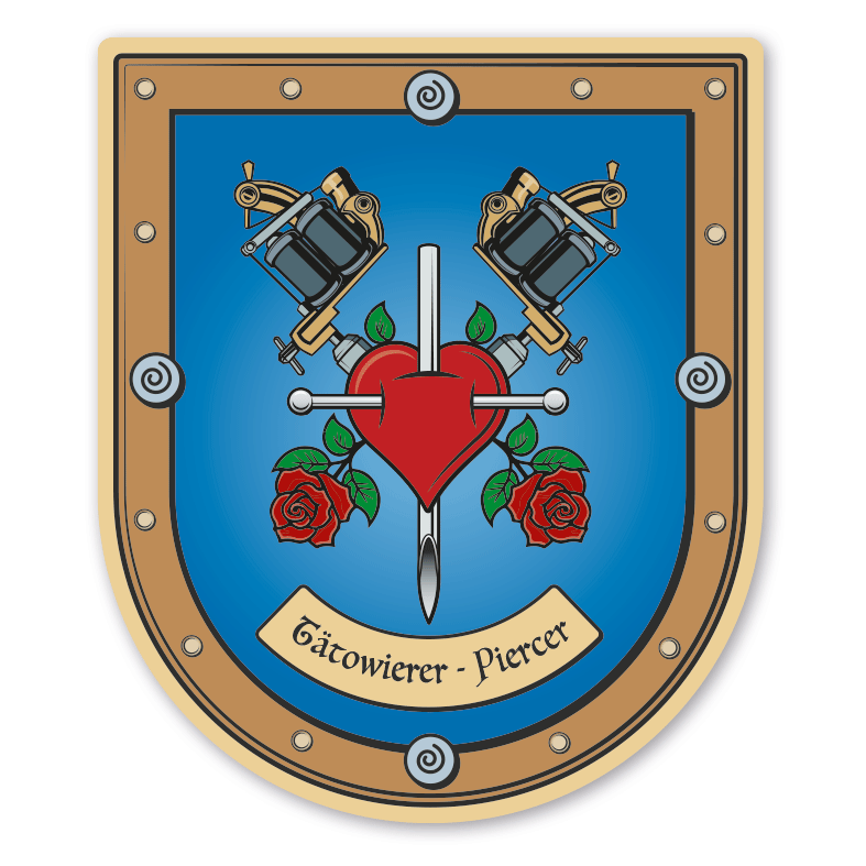 Merkmale des Maibaumschildes / Zunftwappens / Wappenschildes Tätowierer - Piercer - mit Zunftnamen oder Ihrem Wunschtext - Wappen B - MAI-B-117: