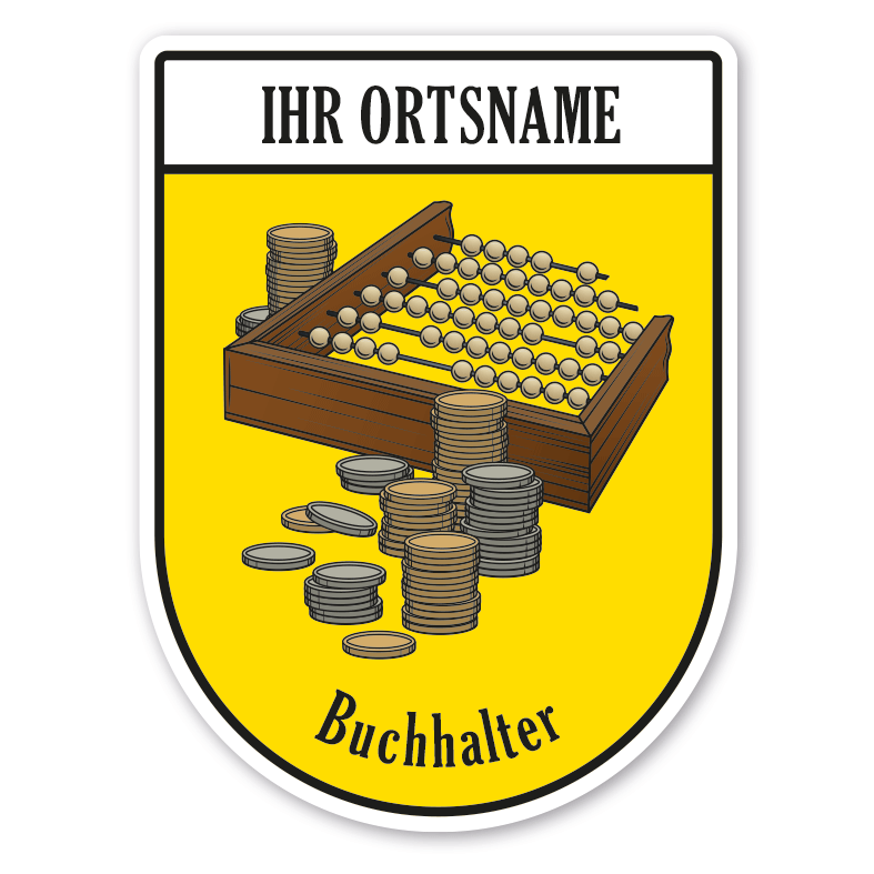 Produktinformationen "Maibaumschild / Zunftwappen Buchhalter - Finanzwesen - Kaufmann mit Zunftnamen, Ortsnamen oder Ihrem Wunschtext - Wappen BL"