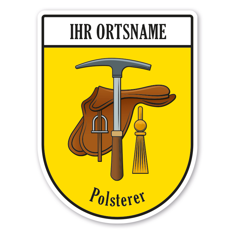 Maibaumschild Polsterer mit Zunftnamen, Ortsnamen oder Ihrem Wunschtext. Unsere Maibaumschilder und Zunftwappen sind in Ihrer Symbolik mittelalterlichen oder neueren Ausführungen der Zunftzeichen einzelner Handwerksgilden nachempfunden. Da die Handwerkswappen der einzelnen Berufsstände je nach Stadt, Land oder Zeitepoche stark variieren können, haben wir uns bei der grafischen Umsetzung auf allgemein gebräuchliche Abbildungen der Werkzeuge und Werkzeugzusammenstellungen konzentriert. Weiterhin wurden einzelne Zunftzeichen um neuere Symbole oder Werkzeuge ergänzt, um auch neuzeitlichen Berufen gerecht zu werden. Unsere Maibaumschilder zur Brauchtumspflege aus deutscher Fertigung sind langlebig, außerordentlich stabil und somit wahre Schmückstücke für jeden Maibaum.