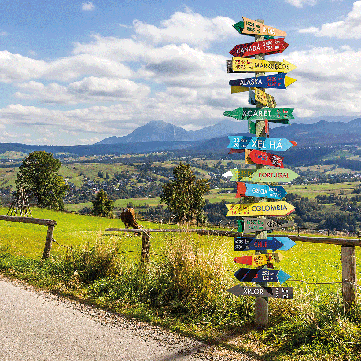 Wegweiser / Pfeilschild - Welt - Länder – mit individuellem Namen und Ihrer Entfernungsangabe – Standard