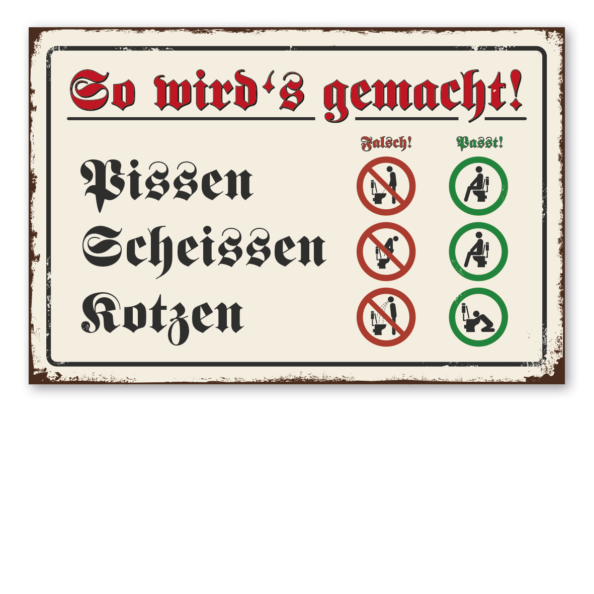 Merkmale des Retro-Schildes / Vintage-Schildes So werd's gmacht - Bayerisches Toilettenschild - Kloschild - WC-Regeln (auch in Hochdeutsch erhältlich) - VIN-587: