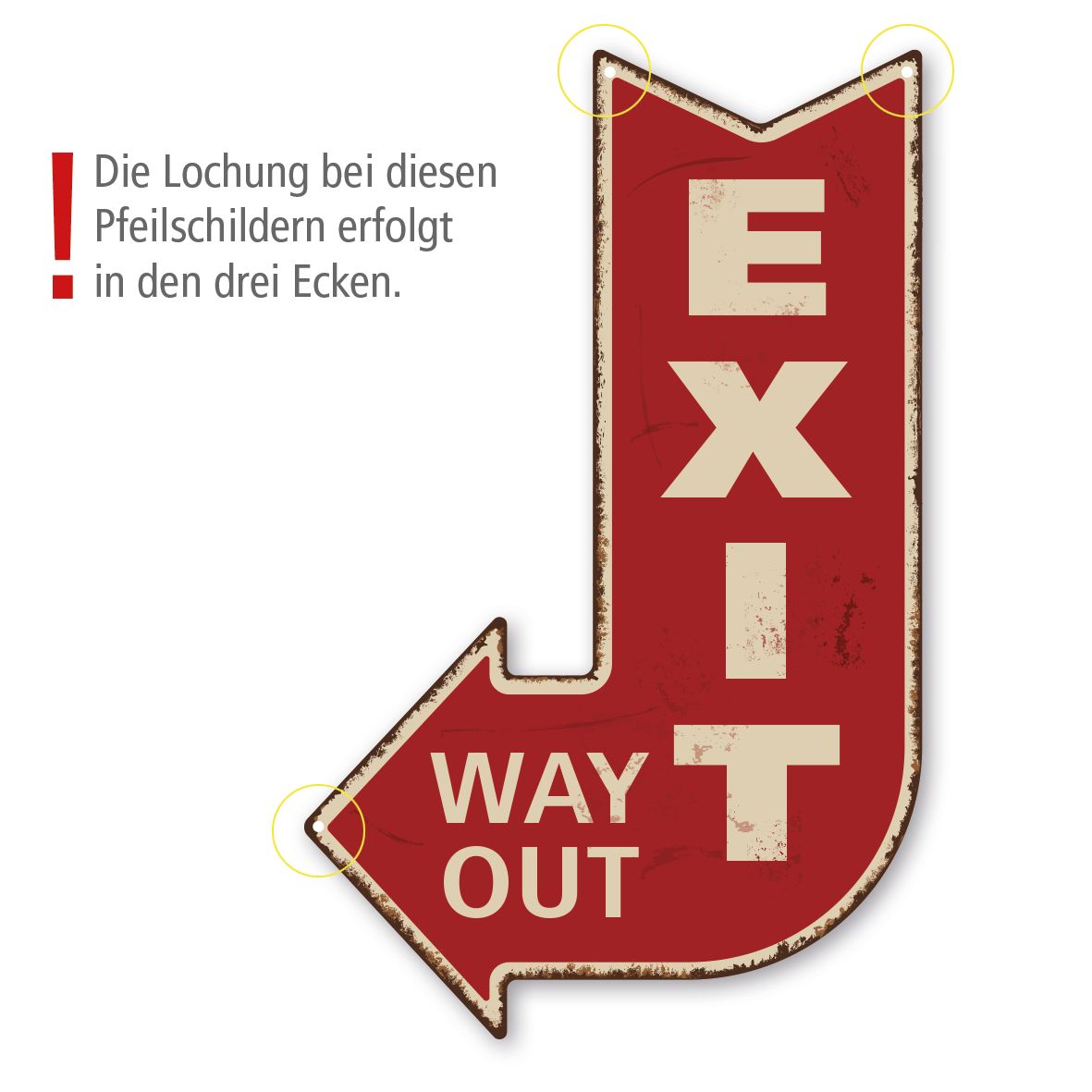 Retroschild / Vintage-Schild Exit - mit Hand - links- oder rechtsweisend