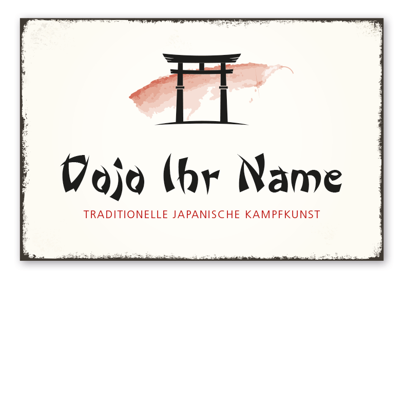 Retro Schild Dojo - Traditionelle japanische Kampfkunst - mit Ihrem Namenseindruck