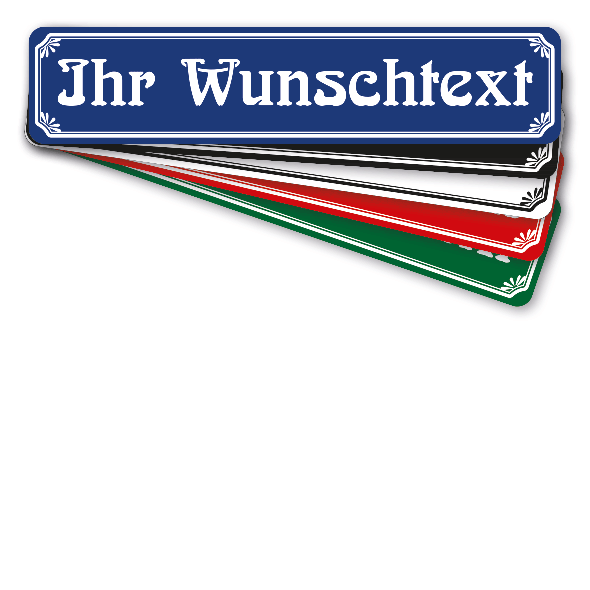 Originelles Straßenschild im Jugendstil in 5 Varianten nach individueller Textvorgabe. Wer Straßenschilder im Jugendstil mag, und diese auch noch mit eigenem Wunschtext haben möchte, ist mit diesem Straßenschild bestens bedient. Unsere Straßennamensschilder sind in diversen Größen und 5 Farbvarianten erhältlich. Ihre Individualisierung mit Wunschtext macht dieses Straßennamensschild zu einer schönen Deko- und originellen Geschenkeidee. Wie alle unsere Aluminiumschilder, sind auch diese Straßenschilder langlebig und bestens für den Außenbereich geeignet.