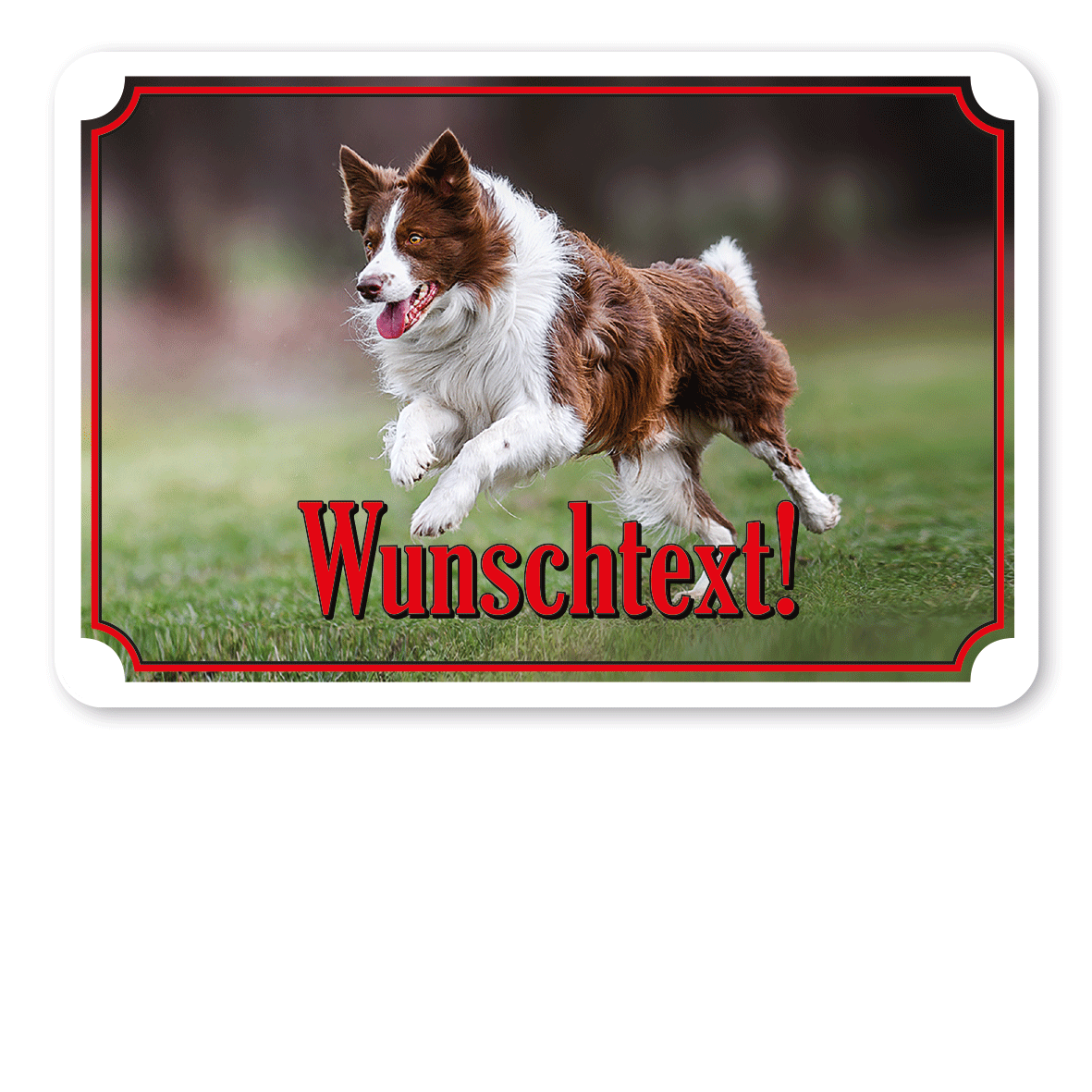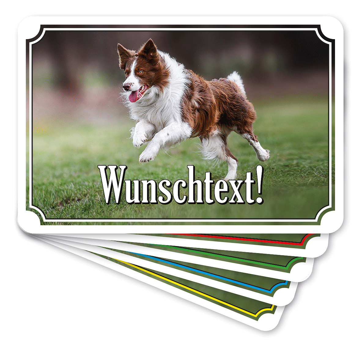 Merkmale dieses ansprechenden Hunde-Photo-Schildes in fünf Farbvarianten