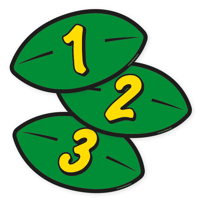Bodenkleber für Bewegungspfade - Pflanze - Blätter mit Zahlen 1-12 - Motivelemente von BWP-01-SET-01