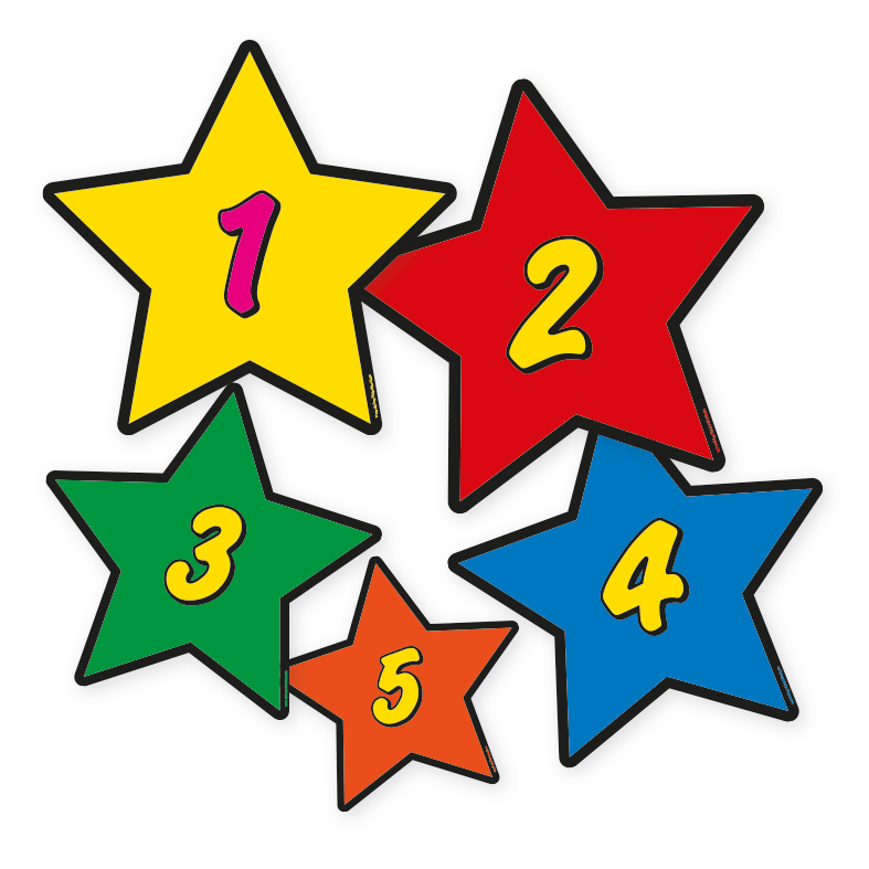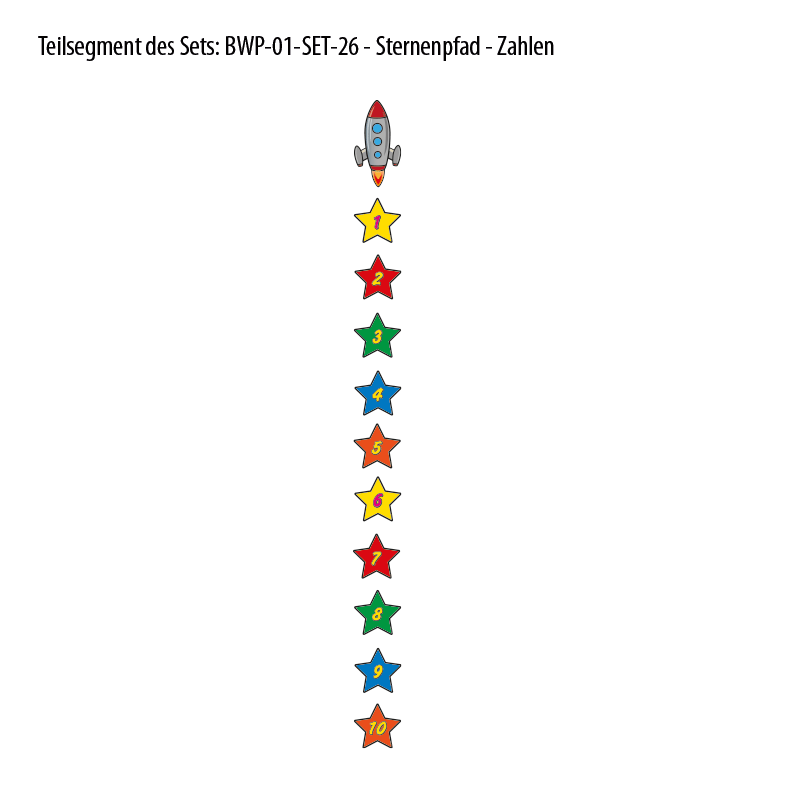Produktinformationen "Bodenkleber für Bewegungspfade - Bunte Sterne mit Zahlen - BWP-01-107 - Motivelemente von BWP-01-SET-26"