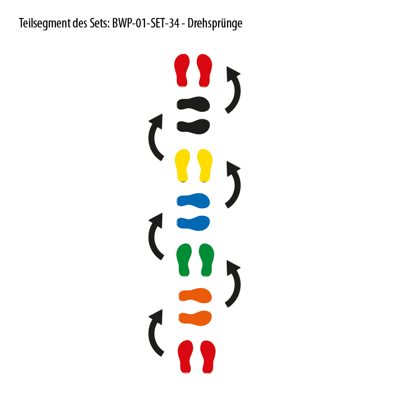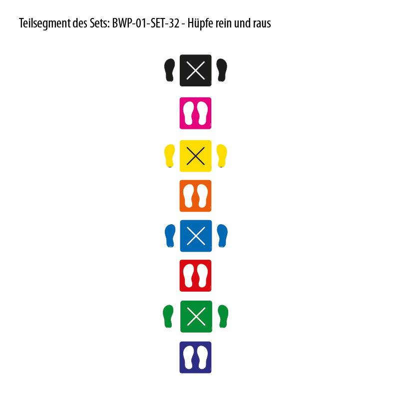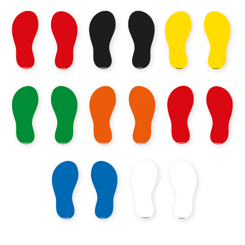 Bodenkleber für Bewegungspfade - Farbige Schuhabdrücke (Paare) - BWP-01-80 - Motivelemente von mehreren Sets