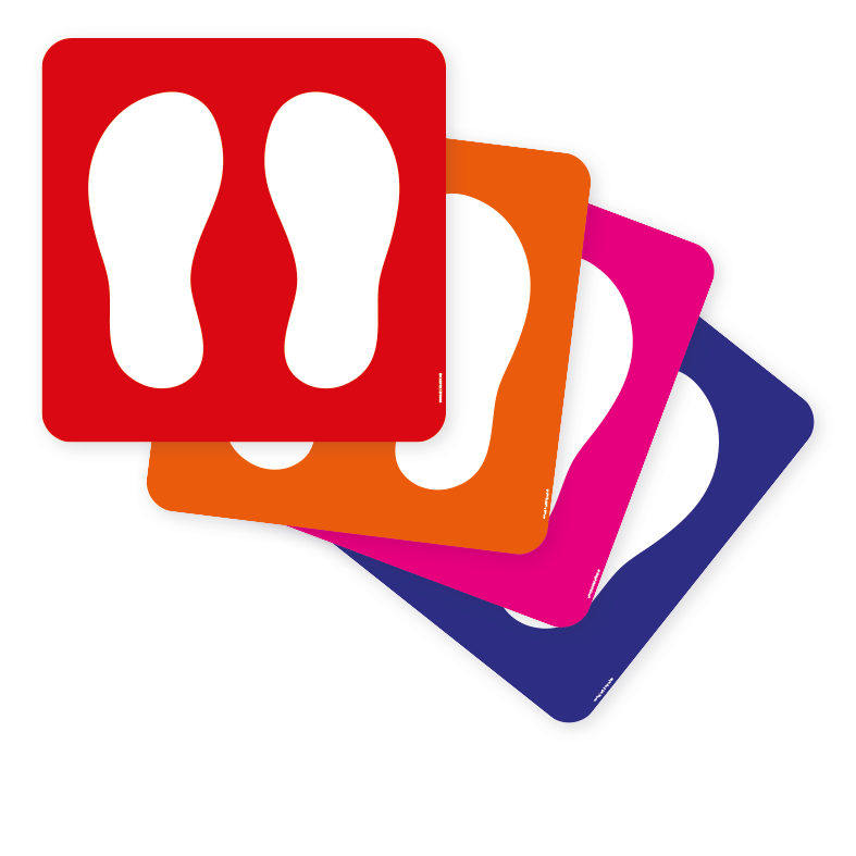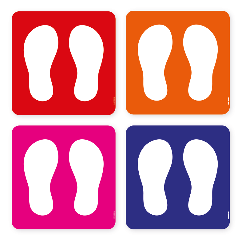 Bodenkleber für Bewegungspfade - Farbige Quadrate mit Schuhabdrücken - BWP-01-226 - Motivelemente von BWP-01-SET-32