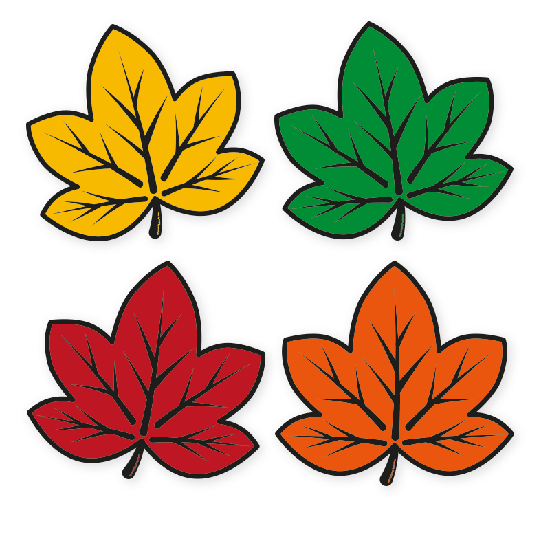 - Blätter: ca. 28 x 26 cm (Breite x Höhe) – rotes und gelbes Blatt je 3 Stück, grünes und oranges Blatt je 2 Stück - gesamt 10 Stück