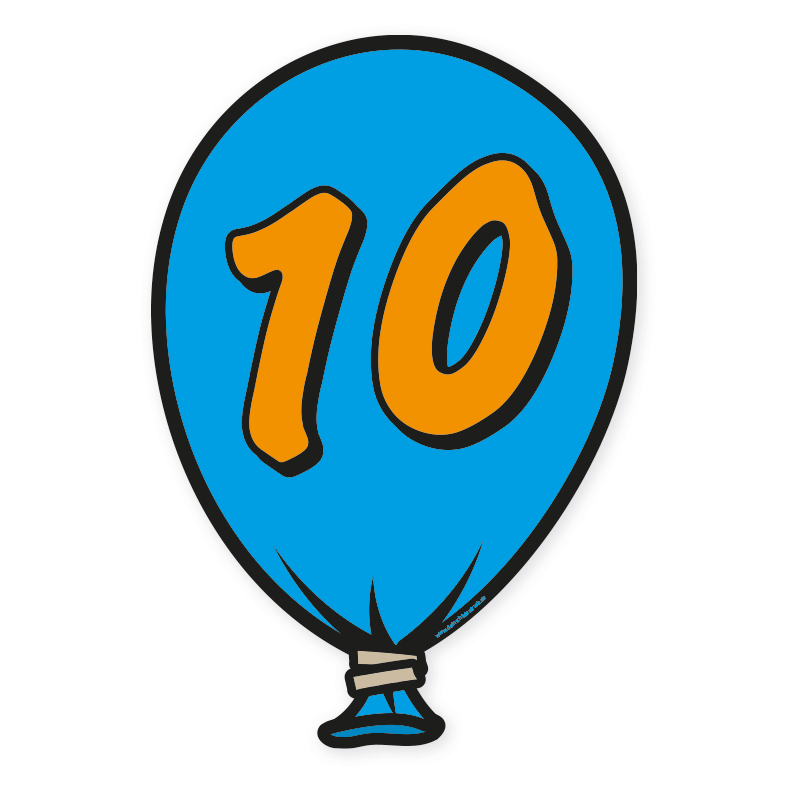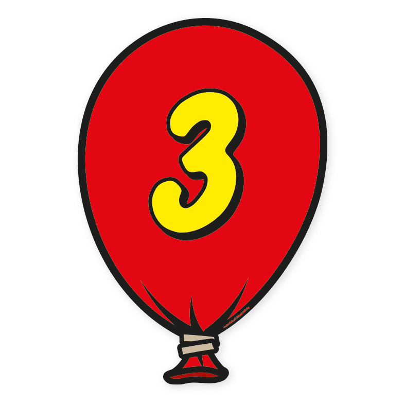- Luftballons: ca. 24 x 35 cm (Breite x Höhe) mit Zahlen 1-10 in diversen Farben – je Zahl 1 Stück - gesamt 10 Stück