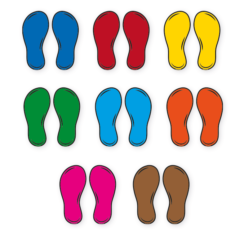 - Füße/Fußabdrücke: ca. 11 x 24 cm (Breite x Höhe) - 8 Farben - je Farbe 1 Paar – gesamt 8 Paare/16 Segmente