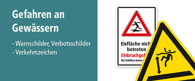 Gewässer wie Flüsse, Teiche und Baggerseen bergen zahlreiche Gefahren, die nicht immer ersichtlich sind, so dass es zwingend erforderlich ist, auf diese Gefahren mit geeigneten Gewässerschildern aufmerksam zu machen. Die Kennzeichnung von Gefahrenstellen an Gewässern der Städte, Gemeinden und Kommunen wie auch privater Liegenschaften fällt unter die Verkehrssicherungspflicht und ist somit von den Eignern der Gewässer bzw. Verantwortlichen ernst zu nehmen. Daher gilt, sofern bestimmte Gewässer zum Baden oder Schwimmen nicht freigegeben sind, sind diese mit geeigneten Verbotsschildern und Warnschildern zu kennzeichnen. Bergen die Gewässer zudem Gefahren, z.B. durch Wellenschlag vorbeifahrender Schiffe, starke Strömung oder die Gezeiten, ist dies ebenfalls und ungeachtet eventuell vorhandener Bade- und Schwimmverbote mit entsprechenden Warnhinweisen zu beschildern. Zusätzliche Warn-, Verbots- und aufklärende Hinweisschilder sind auch bei unsicheren und gefährlichen Uferbereichen aufzustellen, insbesondere bei steil abfallenden Uferbereichen oder Bereichen mit instabiler Klippe. In der Winterzeit können zudem Gewässerschilder erforderlich sein, die Passanten vor der Gefahr des Eiseinbruch warnen. Vermeiden Sie Unfälle und Haftungsrisiken und kennzeichnen Sie Gewässer mit geeigneten Schildern.