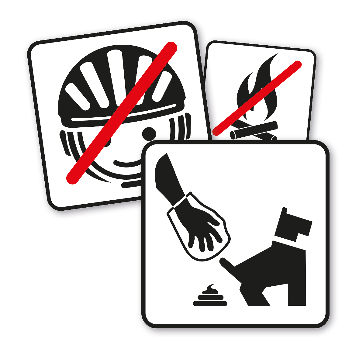 Piktogrammaufkleber aus unserer unverwechselbaren und zeitgemäßen Spielplatzschilderserie SP-02. Die Piktogramme können zum Überkleben aufgedruckter Piktogramme auf diversen Spielplatzschildern im Format 620 x 830 mm (Piktogrammgröße 110 x 110 mm) oder für andere Anwendungen für eine kurz- bis mittelfristige Anwendungsdauer genutzt werden. Bitte prüfen Sie unbedingt die Piktogrammgröße auf Ihren Spielplatzschildern, wenn Sie diese Piktogramme überkleben möchten.