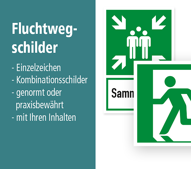 Rettungs- und Fluchtwegschilder sind erforderliche Sicherheitshinweise, um in Betrieben und anderen Gebäuden im Falle einer Gefährdung von Menschen mit einem unmissverständlichen Leitsystem eine schnelle Evakuierung sowie den Zugang zu Rettungseinrichtungen für erste Notfallmaßnahmen sicher zu stellen. Dies erfolgt mit einer Reihe aussagekräftiger und gesetzlich vorgeschriebener Rettungs- und Fluchtsymbole, die Teils als Einzelzeichen, meistens jedoch mit Richtungspfeilen zur Ausweisung der Fluchtwegverläufe zum Einsatz kommen. Ein bekanntes Schilderbeispiel ist hier das Fluchtwegschild "Rettungsweg rechts" nach ISO 7010-E002-1, das mit einem rechtsweisenden Rettungszeichen und Pfeil den Fluchtweg in diese Richtung verdeutlicht. Es werden bei Fluchtwegkennzeichnungen aber auch reine Textschilder oder Textaufkleber eingesetzt, z.B. über Türen, um diese als Notausgänge zu markieren. Diese Sicherheitshinweise sind jedoch nur als unterstützende Beschilderung zur vorgeschriebenen Sicherheitskennzeichnung zu sehen und sollen diese nicht ersetzen.