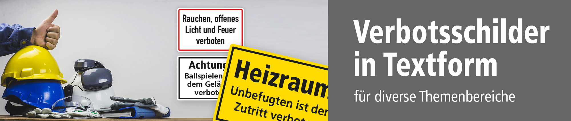Verbotsschilder sind erforderliche Hinweise, die überall dort zum Einsatz kommen, wo Gefahren für Menschen bestehen oder wenn bestimmte Handlungen ausdrücklich unerwünscht sind, um sich oder andere nicht zu gefährden. Dies erfolgt in der Regel mit genormten oder praxisbewährten Verbotszeichen, es können aber je nach Bedarf auch Textschilder zur Verwendung kommen – zur Ergänzung bestehender Beschilderungen oder als Einzelschild. Verbotsschilder mit reinen Textinhalten sind in der Regel rechteckig mit schwarzen oder farbigen Rahmen, weißen oder farbigen Hintergründen und mittig platzierten Hinweisen.
