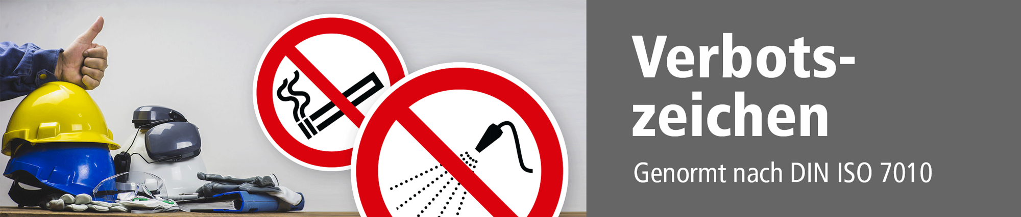 Verbotsschilder und Verbotszeichen nach DIN EN ISO 7010, ASR 1.3 (2013) sind erforderliche Hinweise, die überall dort zum Einsatz kommen, wo Gefahren für Menschen bestehen oder wenn bestimmte Handlungen ausdrücklich unerwünscht sind, um sich oder andere nicht zu gefährden. Als Verbotszeichen werden runde Schilder mit einem breiten roten Rahmen und einem diagonal verlaufenden Balken über schwarzen, genormten Symbolen, die die jeweiligen Verbote unmissverständlich darstellen, bezeichnet. Wie andere Sicherheitszeichen auch, werden Verbotsschilder eingesetzt, um die Sicherheit bei Arbeitsprozessen zu erhöhen und die Unversehrtheit bzw. Gesundheit der Mitarbeiter zu erhalten.