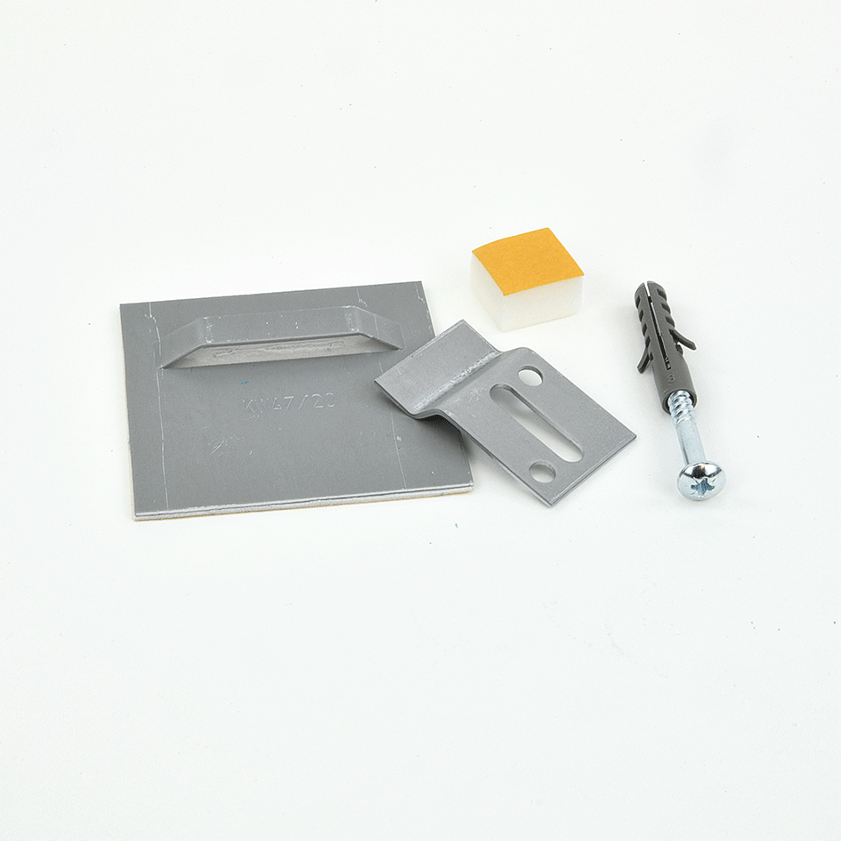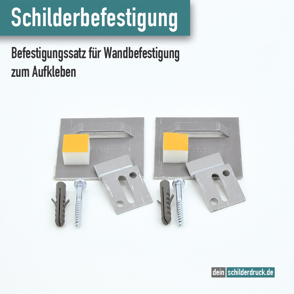 Selbstklebende Schilderbefestigung zur Wandmontage - Z-Haken, Schilderhalter, Wandpuffer, Schraube u. Dübel als 2er Set