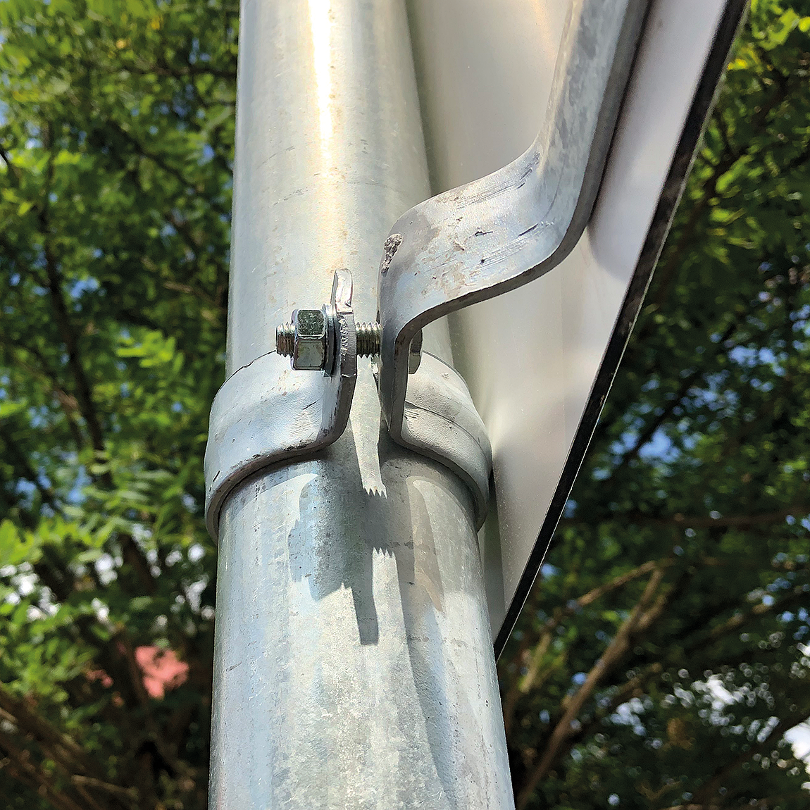 Bitte beachten Sie unsere Hinweise zur Schellengrößen und sicheren Schilderbefestigung (weiter unten). Rohrschellen nach der IVZ-Norm stellen die Standardbefestigungen für Schilder und Verkehrszeichen dar. Sie sind in diversen Längen erhältlich, außerordentlich stabil und somit für dauerhafte Befestigungen von Aluminiumschildern bestens geeignet. Für eine sichere Befestigung von Schildern mit einer Höhe über 200 mm werden zwei Rohrschellen benötigt. Merkmale dieser Rohrschelle zur Schilderbefestigung: Norm: nach IVZ Material: Stahl, feuerverzinkt Ausführung: zweiteilig zum Verschrauben Schellenlänge: ca. 415 mm Lochung zur Schilderbefestigung: Lochabstand 350 mm Verpackungseinheiten: 1 Rohrschelle, 2 Schrauben und 2 Muttern zur Befestigung am Pfosten Bitte beachten Sie: Für eine sichere Befestigung von Schildern mit einer Höhe über 200 mm werden zwei Rohrschellen benötigt. Bei der Wahl der Befestigung mittels Rohrschellen an einem Rohrpfosten sollte die Gesamtlänge der Rohrschellen stets kleiner sein, als die horizontale Schilderbreite, damit die Rohrschellen nicht als unschöner/unnötiger Überstand links und rechts des Schildes herausragen. Bitte ermitteln Sie vor dem Erwerb von Befestigungsschellen erst den Durchmesser des Pfostens, an dem die Schelle angebracht werden soll. Der Durchmesser der benötigten Schellen sollte mit dem Durchmesser des Pfostens übereinstimmen. Schrauben und Muttern zur Schilderbefestigung liegen den Schellen nicht bei – diese sind Zubehör und müssen separat erworben werden – siehe Zubehör. Diese Rohrschelle ist nicht zur Befestigung von Schildern aus PVC-Hartschaum oder ähnlichen Materialien geeignet. Diese Materialien sind zu weich und könnten beim Anziehen der Schrauben/Muttern beschädigt werden bzw. brechen. Nutzen Sie daher diese Rohrschellen nur in Verbindung mit 2 mm Aluminiumschildern oder ähnlich harten Schildermaterialien.